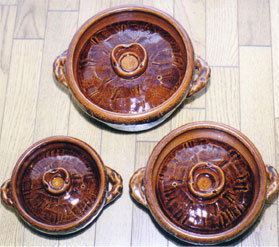 写真は、小さいものから順に1〜2合炊き、3〜4合炊き、5〜6合炊きです。(間にもう一つ2〜3合炊きというのがあったと思います。) 我が家では一番小さい鍋で、毎回1.5合ずつ、炊きたての御飯をいただきます。 昨今、土鍋がブームですが、私も昔から土鍋が大好きで(コレクションとまでは言えませんが) 大小様々、いくつかの土鍋を持っています。が、こと“御飯”に関しては《一志朗さんの土鍋》に優るものはありません。底の厚み、蓋の重さが、他の土鍋とは比べ物になりませんね。