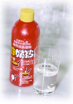 ◆ 油かたぶら〜廃油処理剤 / 2003年 12月 師走の声を聞くと、何やら急に身辺が慌しくなってきますね。テレビや雑誌でも大掃除の特集が目立ちます。普段からマメに手入れをしておけば、暮れに慌てる事もないのでしょうが・・・ ちなみに私は、“一年の計”とばかりに台所の大掃除は、年明けの仕事にしています。 そこで今月のお気に入りは《油かたぶら》という廃油処理剤です。私にとって、今年の10大ニュースに入るほど・・・ 今年出会った最高のヒット商品です。